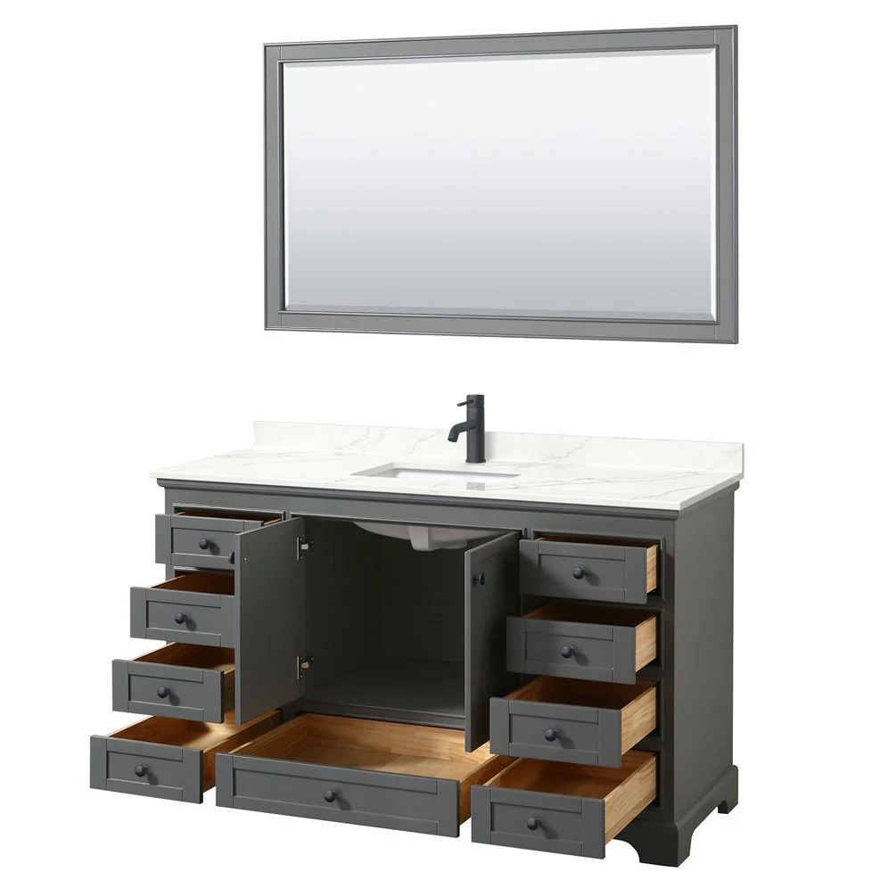 Deborah 60" Dark Gray Single-Sink Vanity with White Carrara Top
