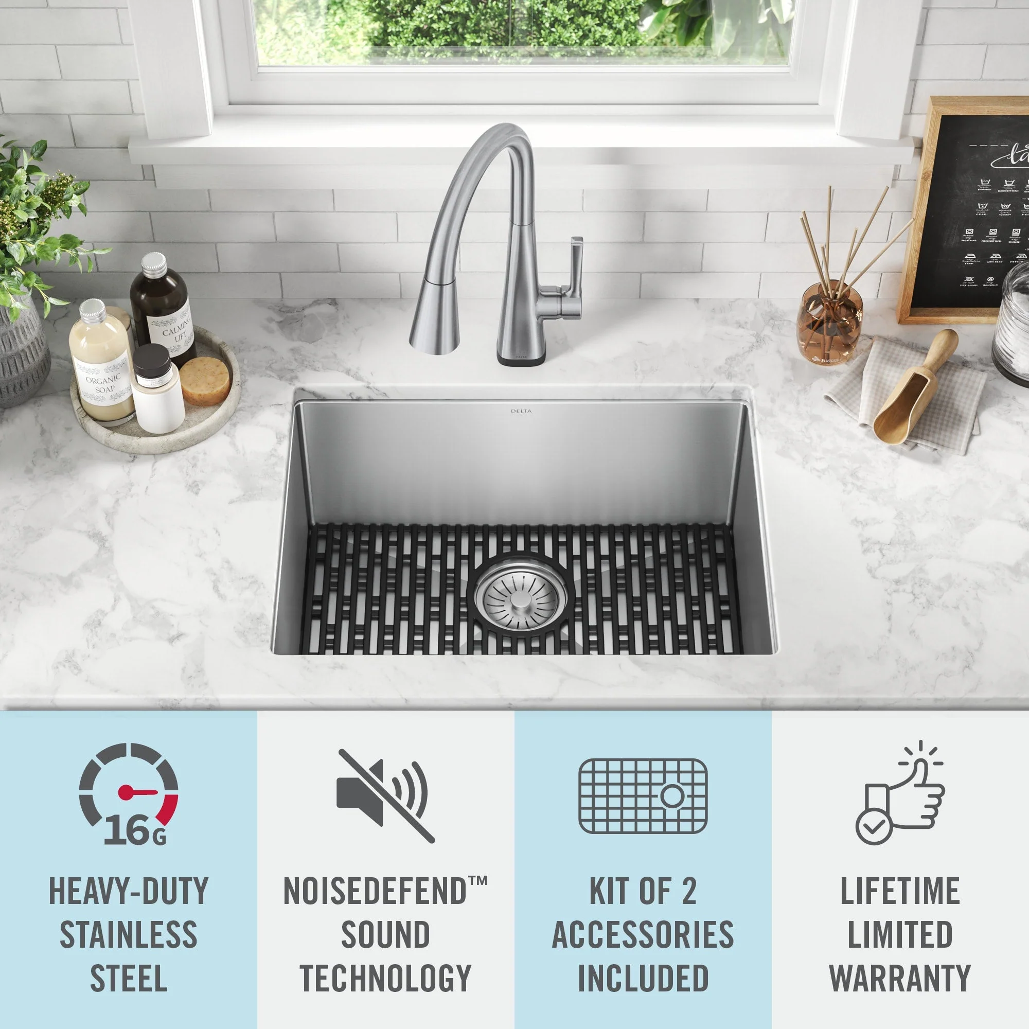 Enhance your utility space with Delta's stainless steel undermount laundry sink. This robust sink offers a contemporary design with clean lines and a seamless installation, perfect for any laundry or utility room. Featuring TRU16 gauge stainless steel, it's built to withstand heavy-duty use while maintaining a sleek, easy-to-clean finish.