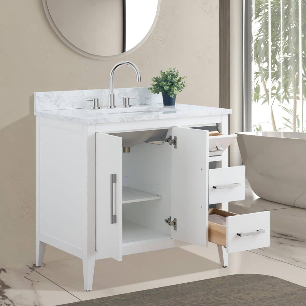 Vanity Art 36 in. W x 22 in. D x 34 in. H Single Sink Bathroom Vanity Cabinet in White with Engineered Marble Top (Arabescato White)