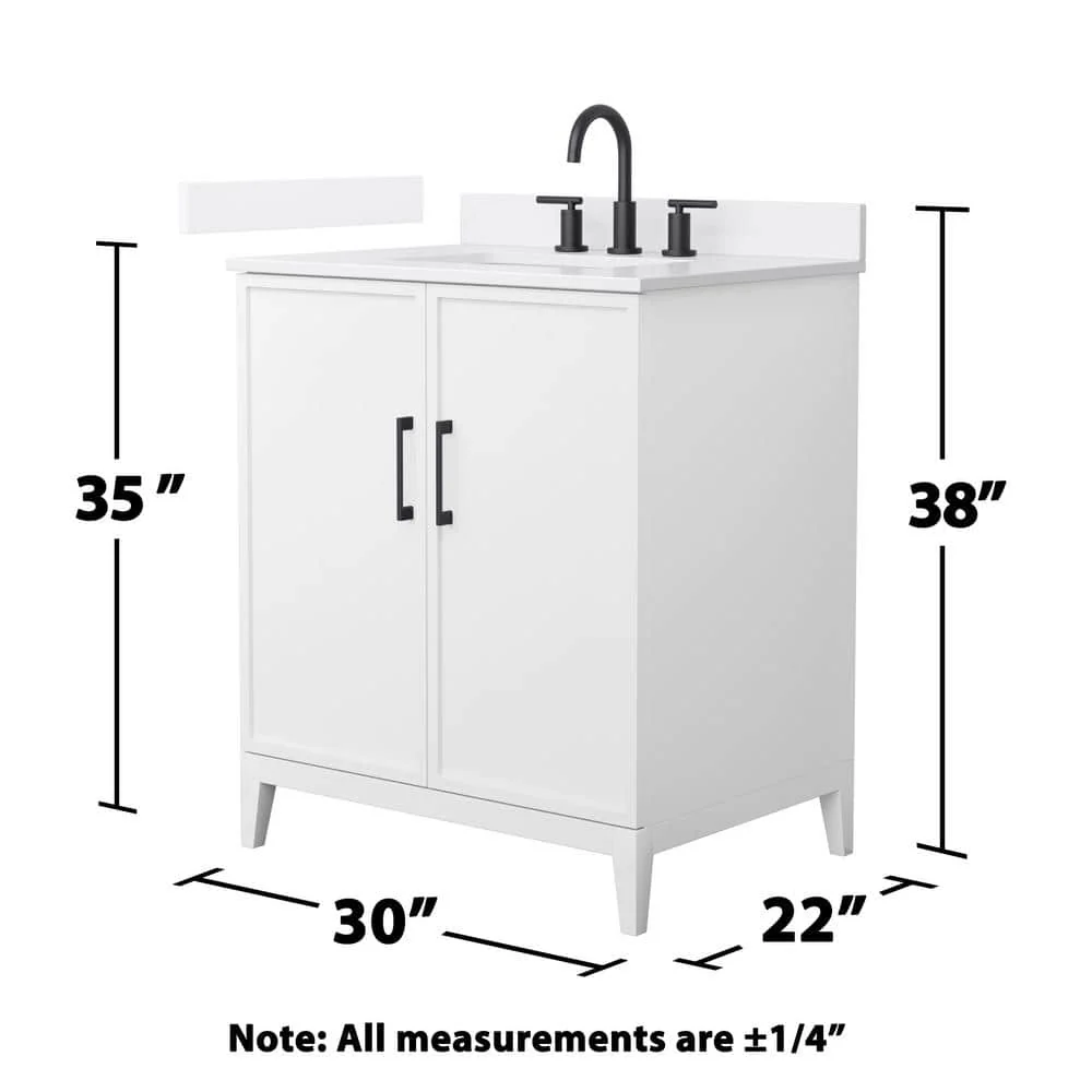 The Wyndham Collection Elan 30" Single Bath Vanity combines transitional design with practical storage. Featuring a white quartz top and soft-close doors, it offers both elegance and functionality.